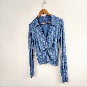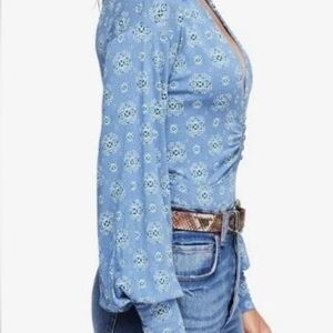Free People Sydney Chambray Blue Top Size Medium Excellent Preloved Condition