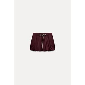 Zara Solid Maroon Balloon Drawstring Mini Skirt Size Medium