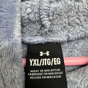 Plush gray fleece jacket by Under Armour. Features a cozy texture.