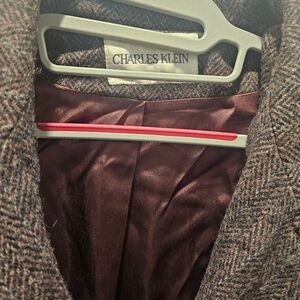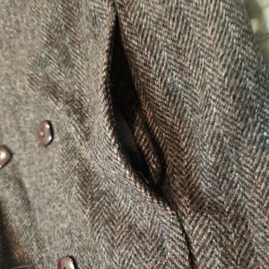 Vintage Charles Klein 100% pure wool long herringbone overcoat. Women’s size 14. Made in the USA. Classic double-breasted front, full satin lining, and a rich brown/charcoal woven texture. Warm, structured, and perfect for fall or winter.