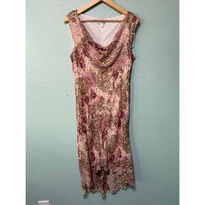 Vintage Dressbarn Women's Pink and Brown Y2K 2000s Midi Beaded Dress Large