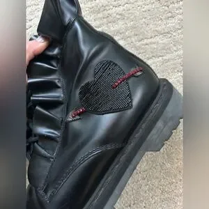 These are really nice with a straight leg Jean or leggings. They are still in pretty good condition but there is some beading off of the heart detail. Not noticeable when wearing. I could not find the size but I am between a 9/9.5. They fit comfortably with thick socks.