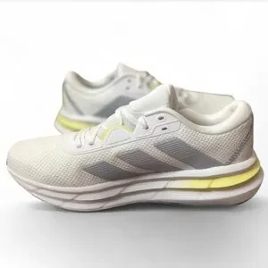 Adidas running shoes in white/gray/yellow. Features yellow highlights. Ideal for active wear. Brand new with tags and original box!