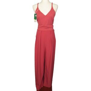 Halara Dusty Red Breezeful Flowy Wide Leg Dressy Jumpsuit With Pockets Sz Small