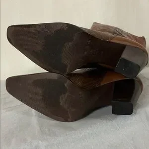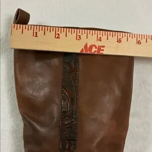 Beautiful brown leather with darker tooled embossed leather design! Perfect for back to High School or college or work or a night out with skinny jeans or skirt! Size 6M glove fit could also fit. 5 or 5.5. Awesome beautiful boots at a great price! I always ship out fast! Same day if possible or next day.