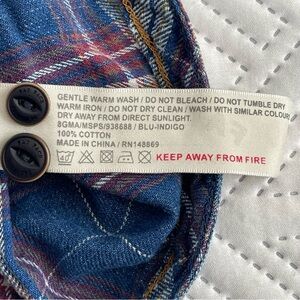 Fat Face Indigo Dye Plaid Flannel Button Down Shirt Size L