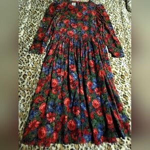 Vintage Laura Ashley Size 12 Corduroy Floral Garden Dress Gathered Zipper NICE