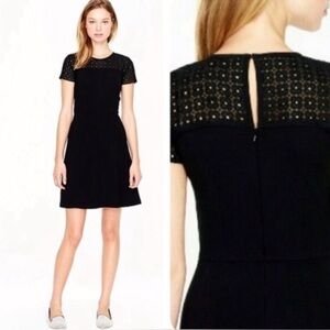 Classic black J. Crew dress with eyelet lace accent on top. Back zipper closure, with hook and eye at top of neck. Excellent preloved condition!