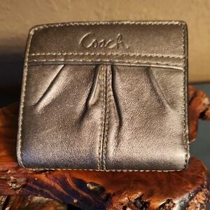 Coach Pleated Metallic Leather Compact Wallet, Gently Used