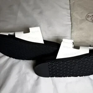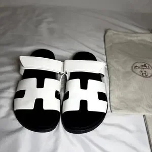 Elegant Hermes sandals in black and white. Perfect for stylish outings.