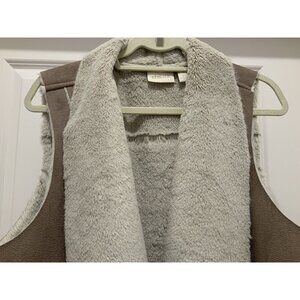 Chicos Women’s Suede & Faux Fur Vest Brown Cream Size 2.