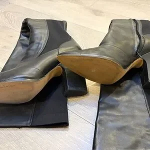 Step out in style with these elegant black leather over the knee boots. Perfect for any occasion, they offer both comfort and sophistication.