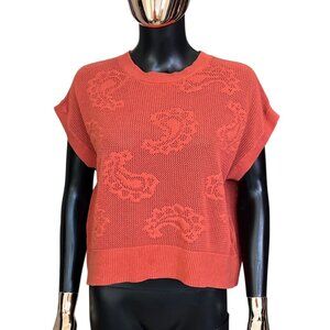 DR2 100% Cotton Paisley Open-Stitch Sweater Tank Size Medium Brick Orange EUC