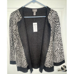 Chico's Women's Travelers Full Zip Jacket Sz 2/L Blk Animal Crinkle Lightweight