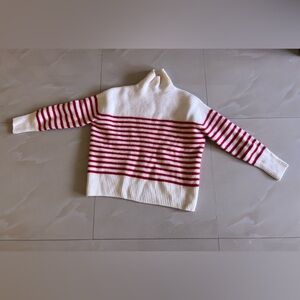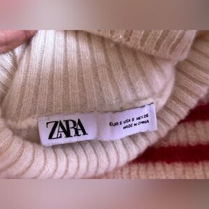 ZARA Turtleneck Ribbed Knit Wool Sweater Striped Red size S