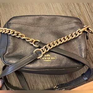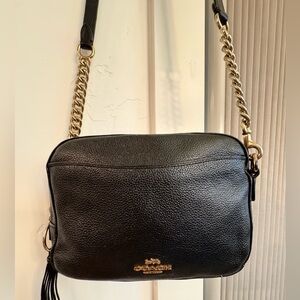 Coach Black Pebbled Leather Camera Crossbody Bag