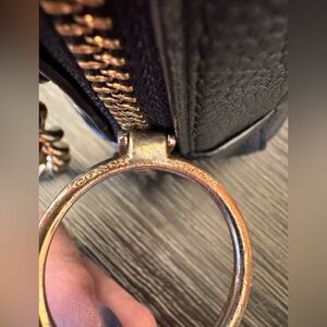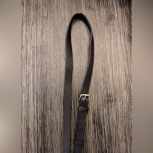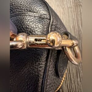 Vintage Sleek black leather with gold accents. Features adjustable strap. Ideal for everyday use.