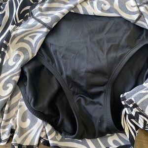 Robby Len Black White One Piece Swimsuit Dress size 14 Slimming Vacation Beach