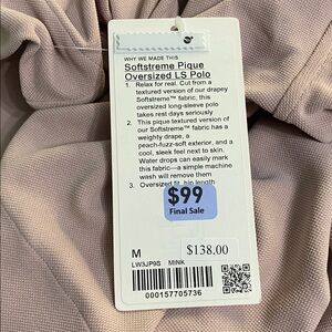 Lululemon - Softstreme Pique Oversized Long Sleeve Polo - NWT