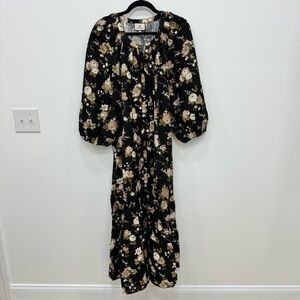 Tuckernuck NEW Midnight Garden Lyles Puff Sleeve Floral Boho Maxi Dress Size XL
