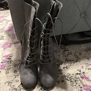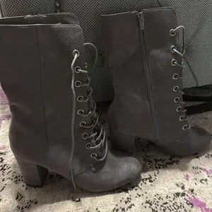 ⭐️Step out in style with these casual gray lace-up boots from Metaphor. The mid-calf shaft style and round toe shape provide a comfortable fit for any occasion, whether it's a wedding, party, or just a casual day out. The boots feature a block heel style, adjustable laces, and a zipper accent for added flair. These boots are perfect for any season, whether it's winter, summer, fall, or spring. The biker style and festive theme make them a great addition to any outfit, whether you're going for a punk, gothic, or bohemian look.