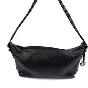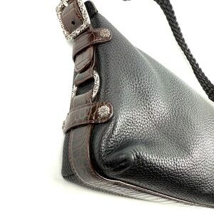 Brighton Handbag Black Brown Leather Shoulder Bag Purse Bag Charm Silver Accent