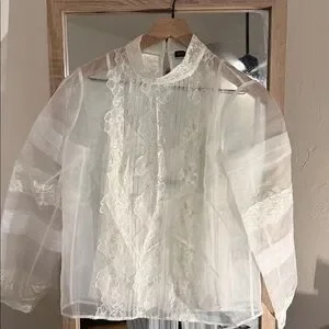 White House Black Market Sheer White Lace Blouse