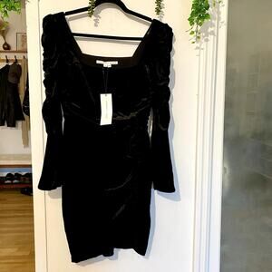 NWT Veronica Beard Toki Black Ruched Velvet Mini Dress Long Sleeve LBD sz 6