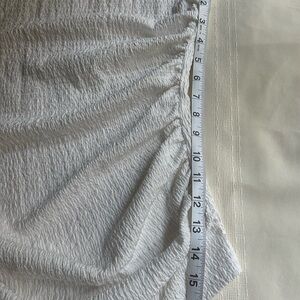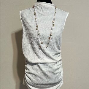 Elegant white blouse with textured fabric. Sleeveless and stylish. Ideal for any occasion.