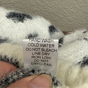 Macaron XL Fuzzy Leopard Print V Neck Sweater Soft Cozy White Black Animal Knit