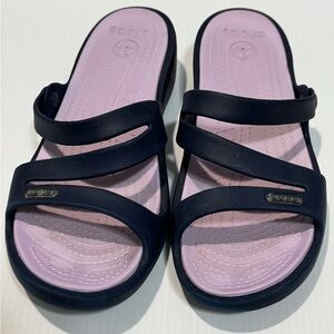 CROCS Women's Navy and Lavender Sandals, size 8W, pre-owned