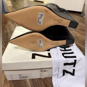 SCHUTZ Glossy Black Croc-Embossed Heeled Boots