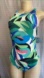 Vibrant swimsuit with bold blue and green patterns. Ideal for swimming fun.