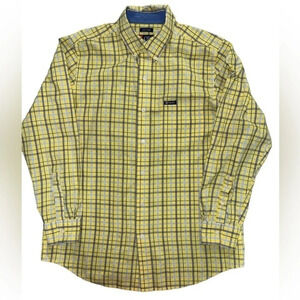 Chaps Long Sleeve Button Down Oxford Dress Shirt Yellow/Blue Plaid