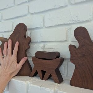 Beautifully crafted wooden nativity scene set, perfect for adding a classic touch to your holiday decor.