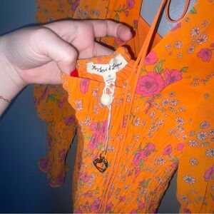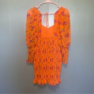 For Love and Lemons Peony Orange Ribbed Mini Dress Small Long Sleeve