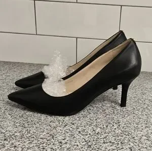 Sleek black heels with a pointed toe. Ideal for formal events. Comfortable and stylish.
