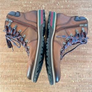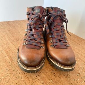 Mens Pikolinos brandy leather ankle boots with side zip and laces. Minor wear. EU size 41.