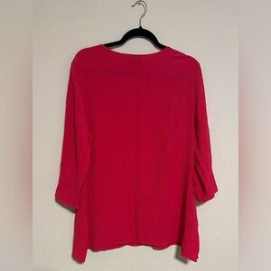 Vibrant coral blouse with elegant button details on sleeves. Ideal for any occasion.