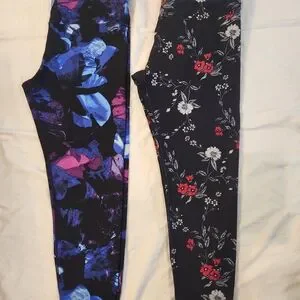 Bundle Stylish leggings by Calvin Klein. Includes blue abstract design and black floral pattern. Perfect for any occasion. wore only once.