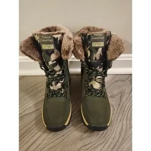 Womens Fashion Camouflage Sport Winter Snow Boots Fur Lined Size 6.5