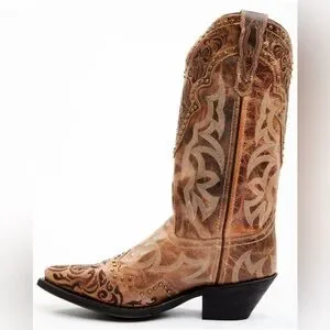 LAREDO WOMEN’S BRAYLNN LEATHER WESTERN PERFORMANCE STUDDED BOOTS -SNIP TOE. SZ 9