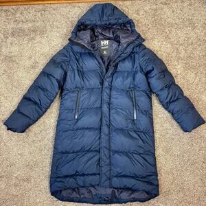 Helly Hansen Men's Size Small Navy Active Long Winter Parka Puffer Coat Spell Out Puffer