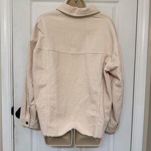Zara Beige Corduroy Shacket Button Front Frayed Hem Size M