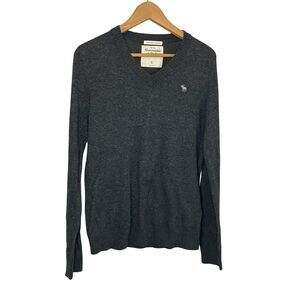 Experience luxury and comfort with this Abercrombie & Fitch cashmere blend v-neck sweater in sophisticated charcoal gray. Crafted from premium materials, this size S sweater offers timeless style and exceptional softness.