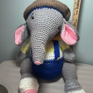 Handmade crochet “Doki the Elephant" amigurumi by The Little Hook Crochet; smoke-free, pet-free home; no smells or signs of wear; beautiful gift, display, or nursery addition! See pics for details & measurements;