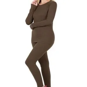 Comfortable brown long sleeve top and leggings set. Perfect for lounging or casual wear.