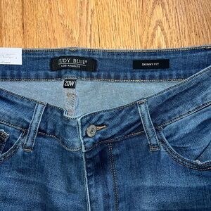 Judy Blue jeans size 20W never worn!! Skinny Fit. Has black and red fabric underneath the holes.