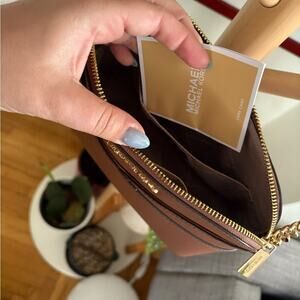 Michael Kors Jet Set Travel Dome Crossbody Bag Saffiano Leather Gold-Tone