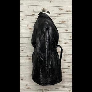 Vintage Navarre Leather Company mob wife leather patchwork belted trench coat